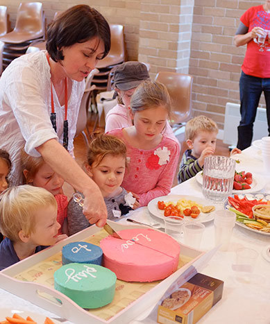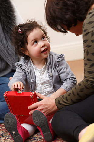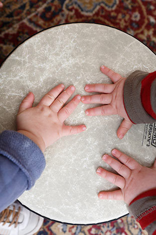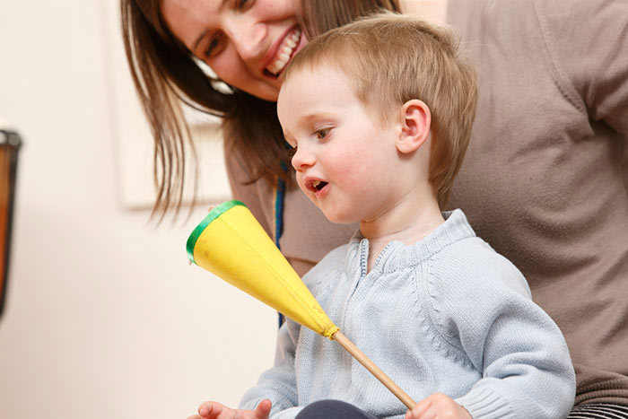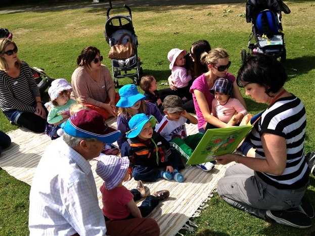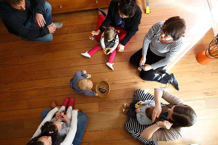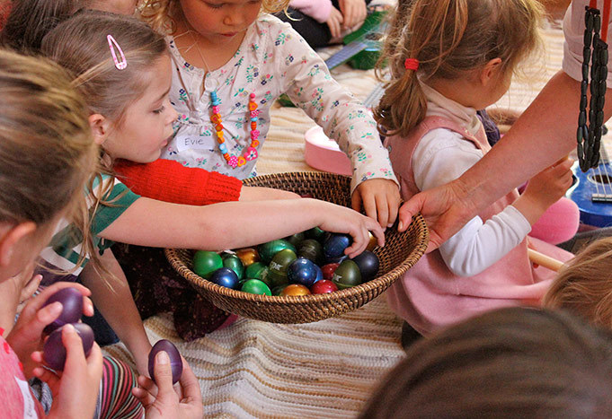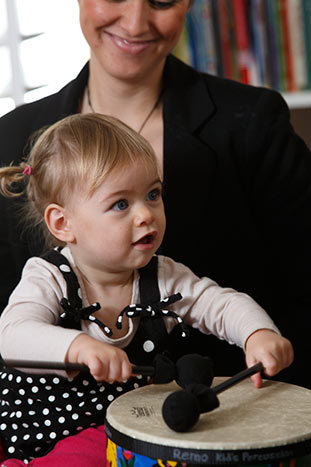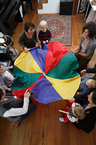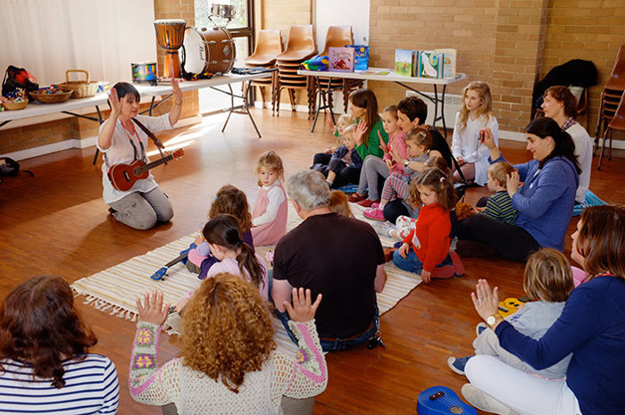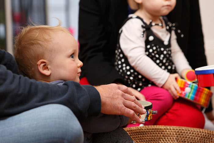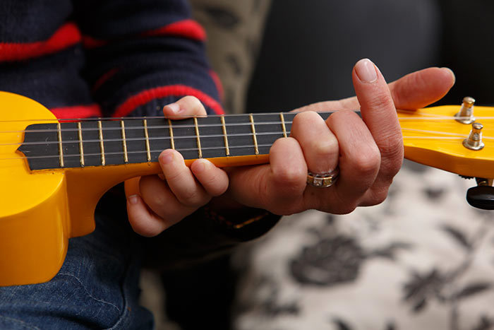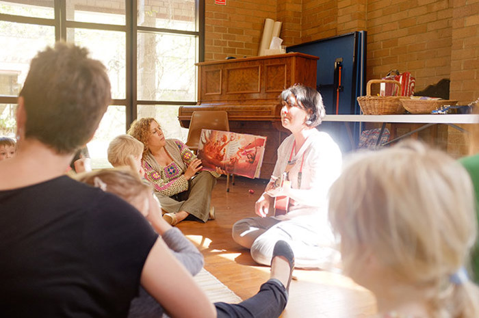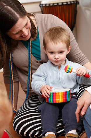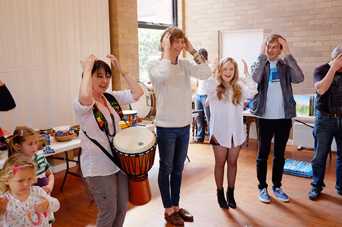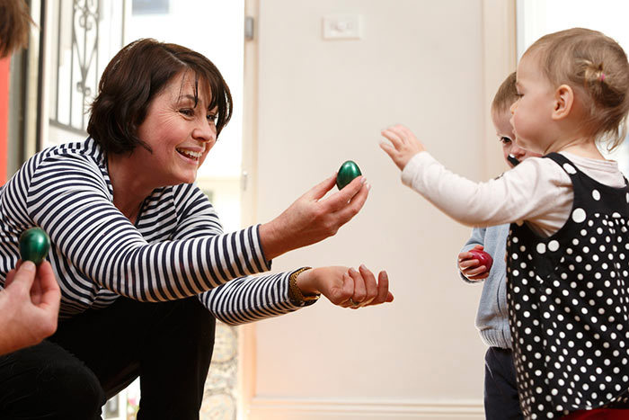 Child Care Centre-Jo and Vesma play ukulele for a child's birthday celebration